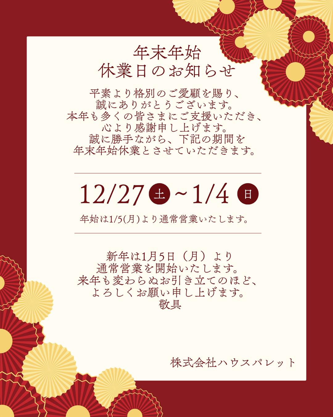 来年もハウスパレットをどうぞよろしくお願いいたします。